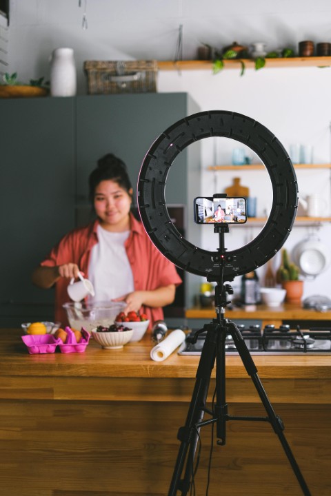 Hvis du optager i et mørkere rum eller om aftenen, kan en ring light eller en softbox være en stor hjælp.